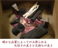 これらの炭は、炭質に鹼抜けがして渾厚なやわらか味があり、釜に接触することがあっても損傷を与える事がなく、炭火は穏やかで釜底を傷める事がありません。