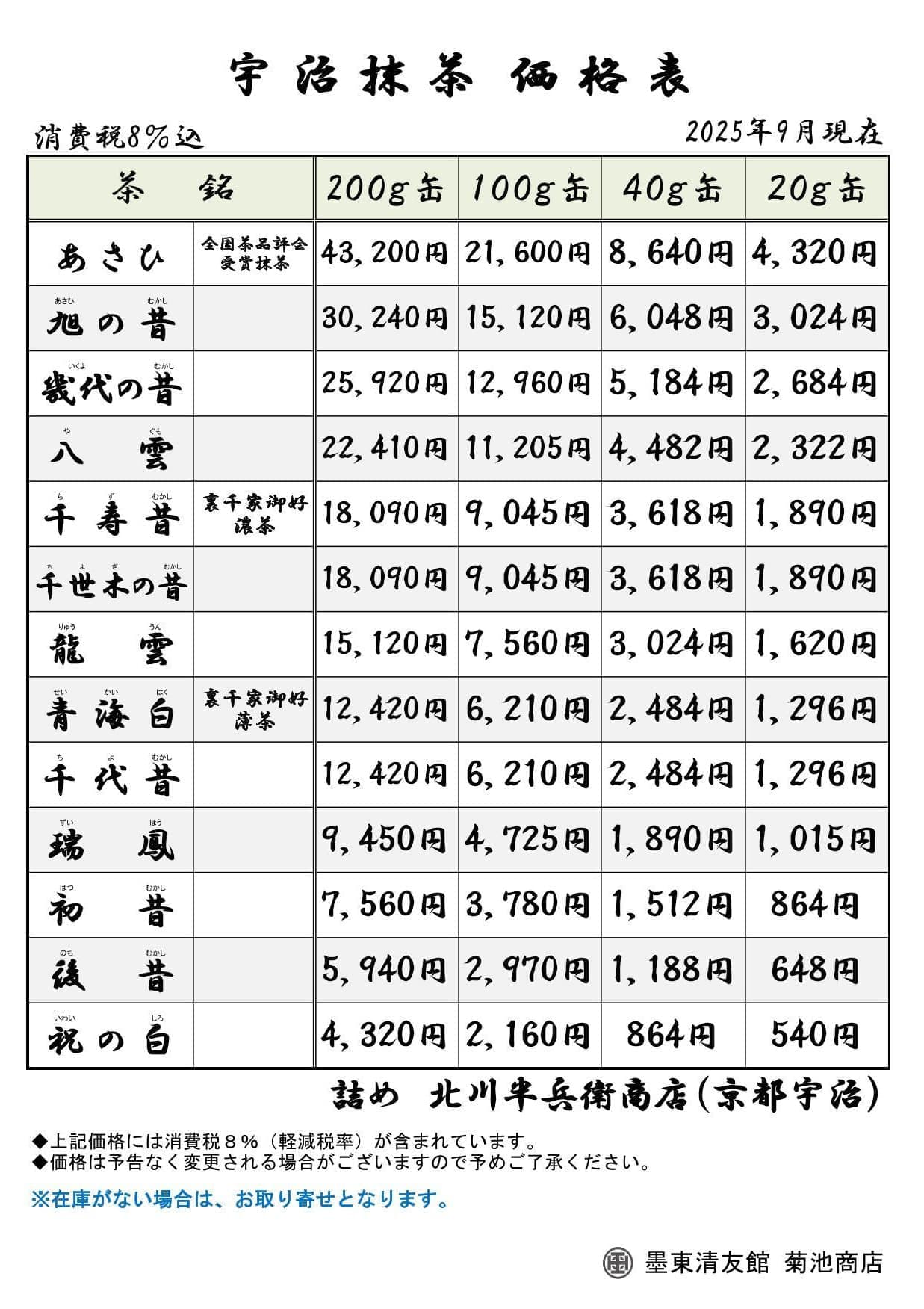 ※当店では、消費税を含んだ価格表示を行っております。