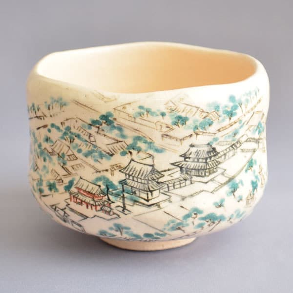 紫野「大徳寺」の境内図が描かれた白楽茶碗