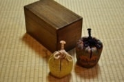 封印が施された飾壺を席中にて開封し、取り出された碾茶(てんちゃ)は実際に石臼にて碾き、後座で用います。