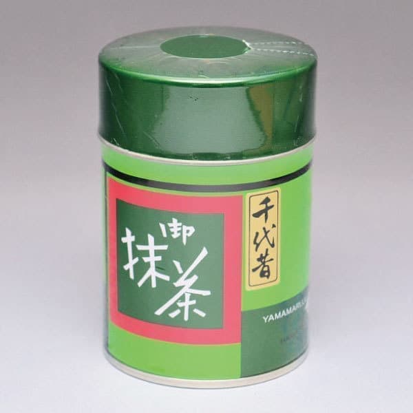 京都宇治「北川半兵衛」詰めの抹茶『千代昔(ちよむかし)』100g缶です。